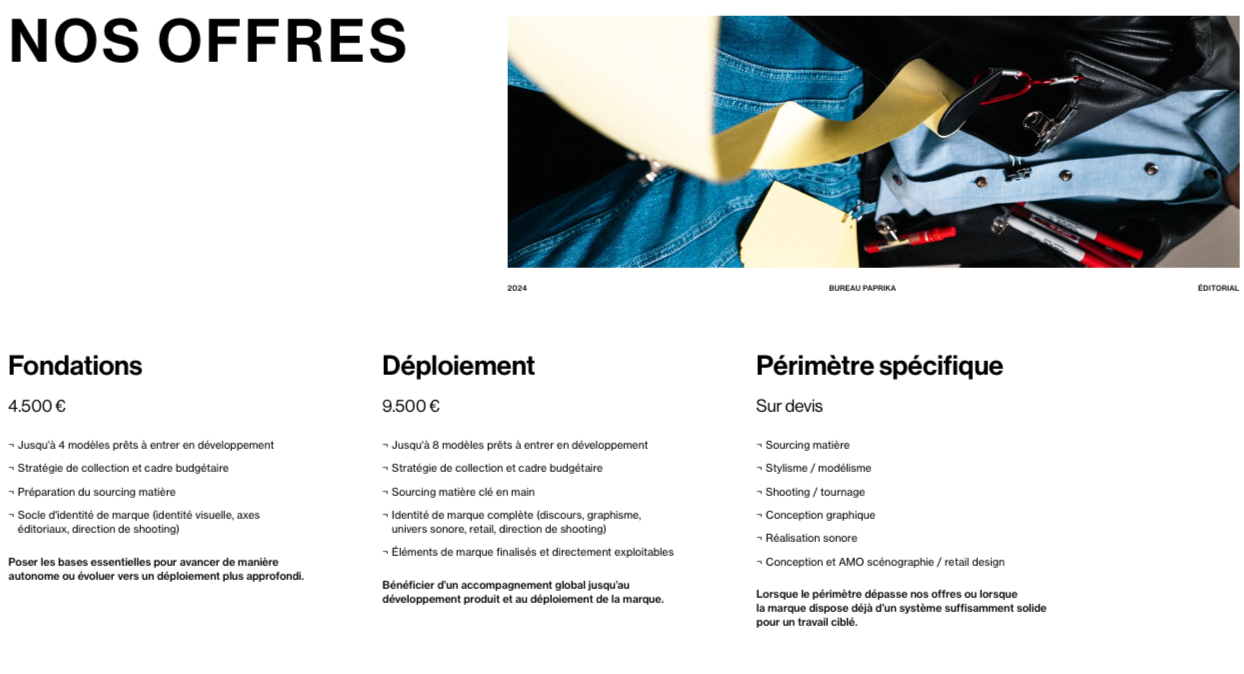 sur mesure ou des missions de consulting en stylisme, modélisme et direction artistique.