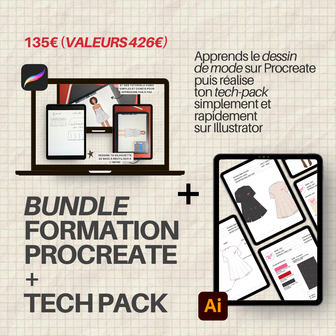 Cette formation t’apprend à maîtriser Procreate, à comprendre le dessin de mode pour tes projets mode.