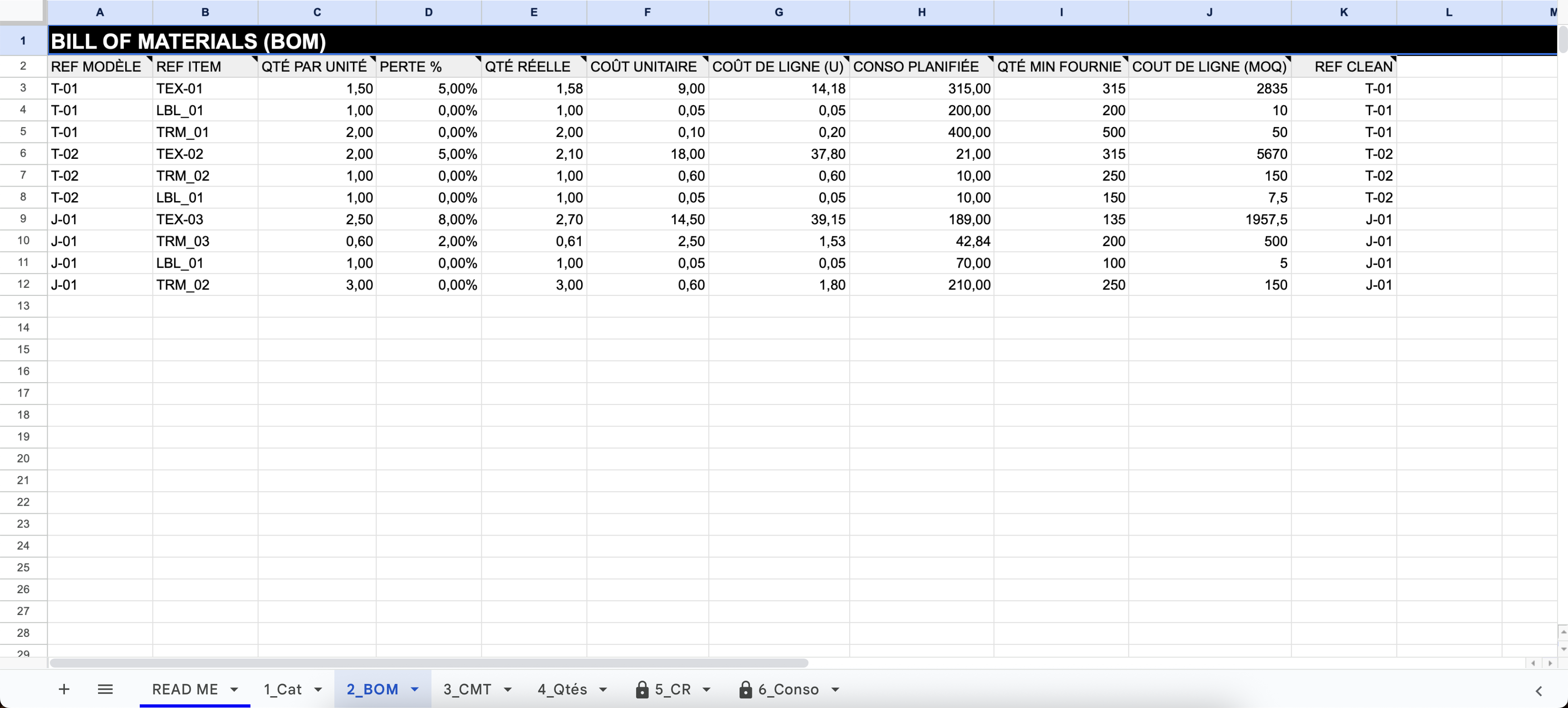 Template Suivi Achats : suivez vos matières premières, vos MOQ et vos investissements avec précision.