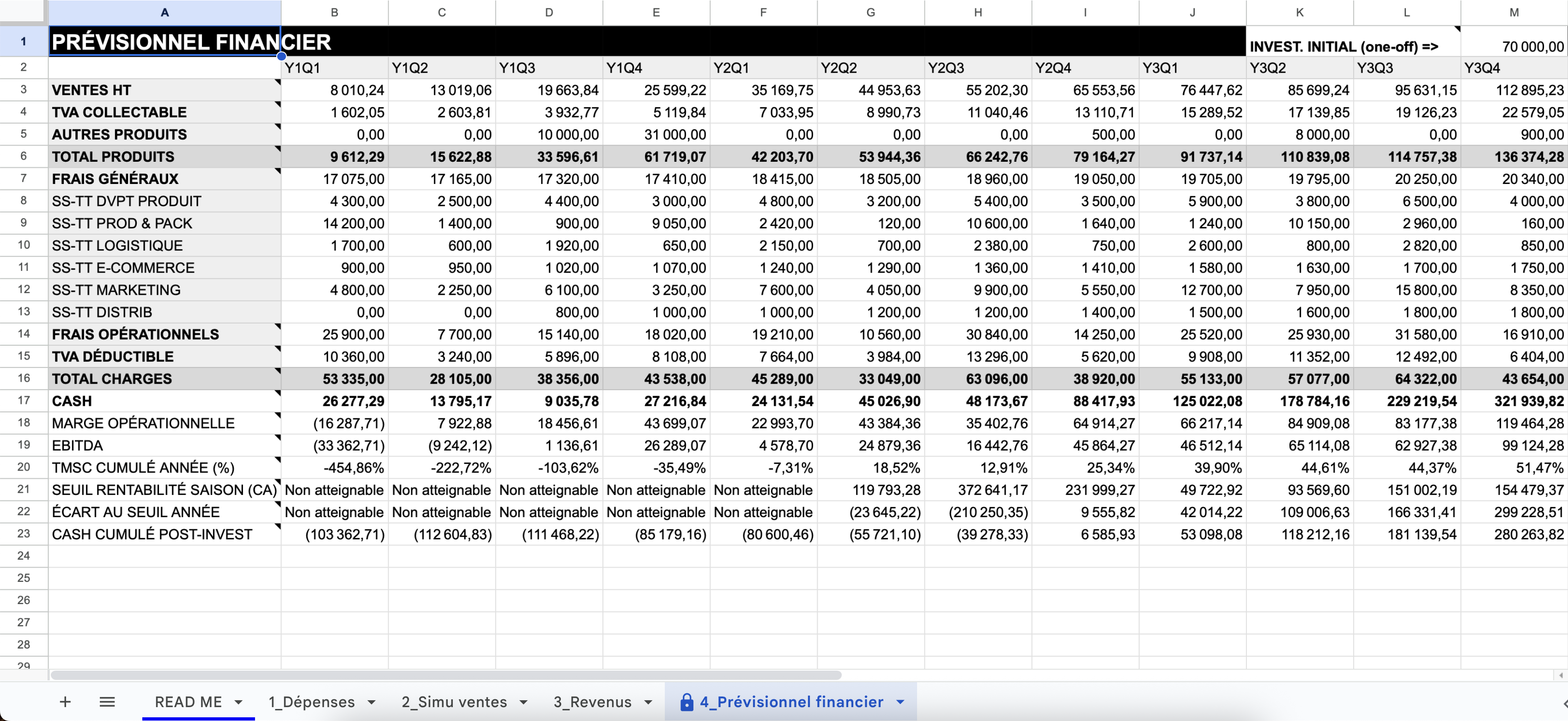 Template Prévisionnel : projetez vos ventes, dépenses et rentabilité.