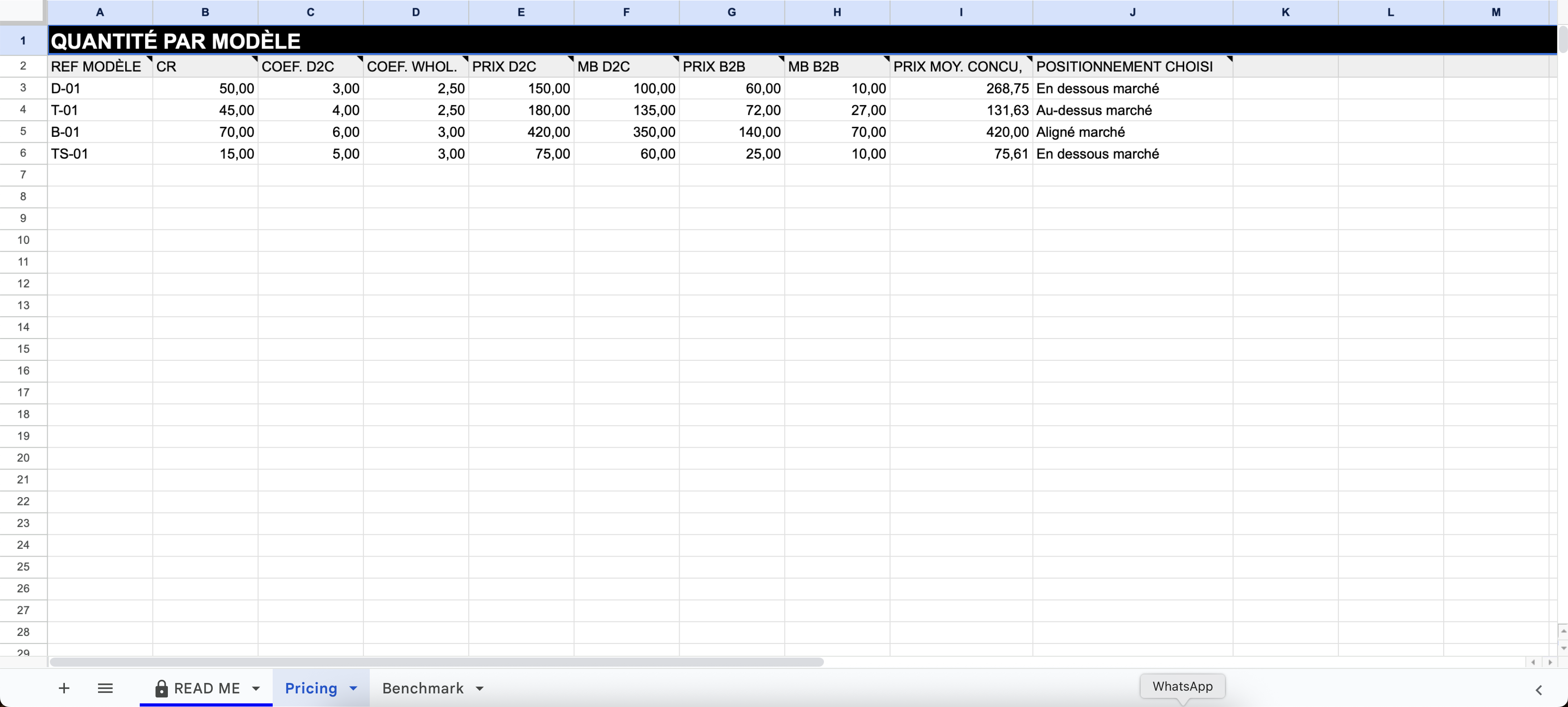 Template Pricing : calculez vos prix (D2C & B2B) avec méthode et positionnez vos articles face au marché.